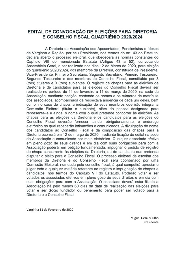 Eleiã§ã£o Diretoria AAPIVR