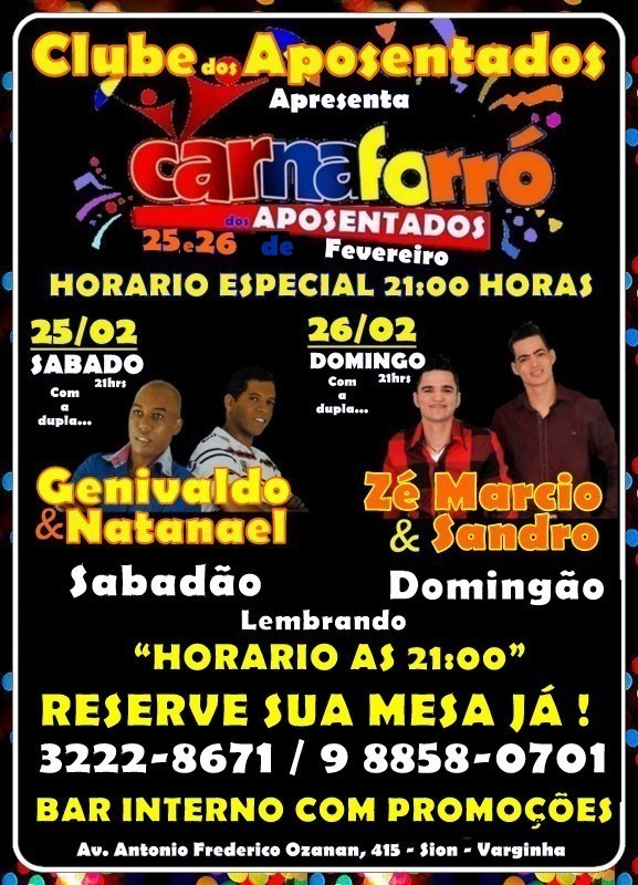 CarnaForró Clube dos Aposentados 25 e 26/02